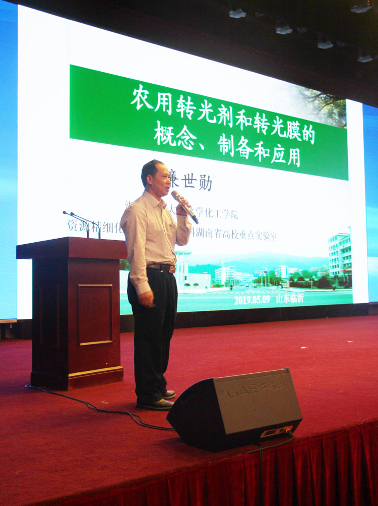 會議第二階段,進行專題講座。首先,由湖南師范大學廉世勛教授講解農(nóng)用轉(zhuǎn)光劑和轉(zhuǎn)光膜的制備和應用,詳細介紹轉(zhuǎn)光膜產(chǎn)品優(yōu)勢及發(fā)展前景。