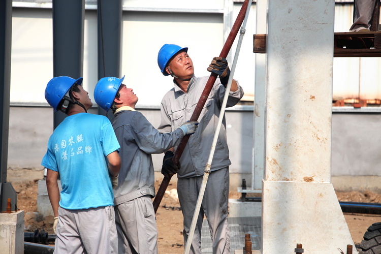 與員工協(xié)力安裝好踏板